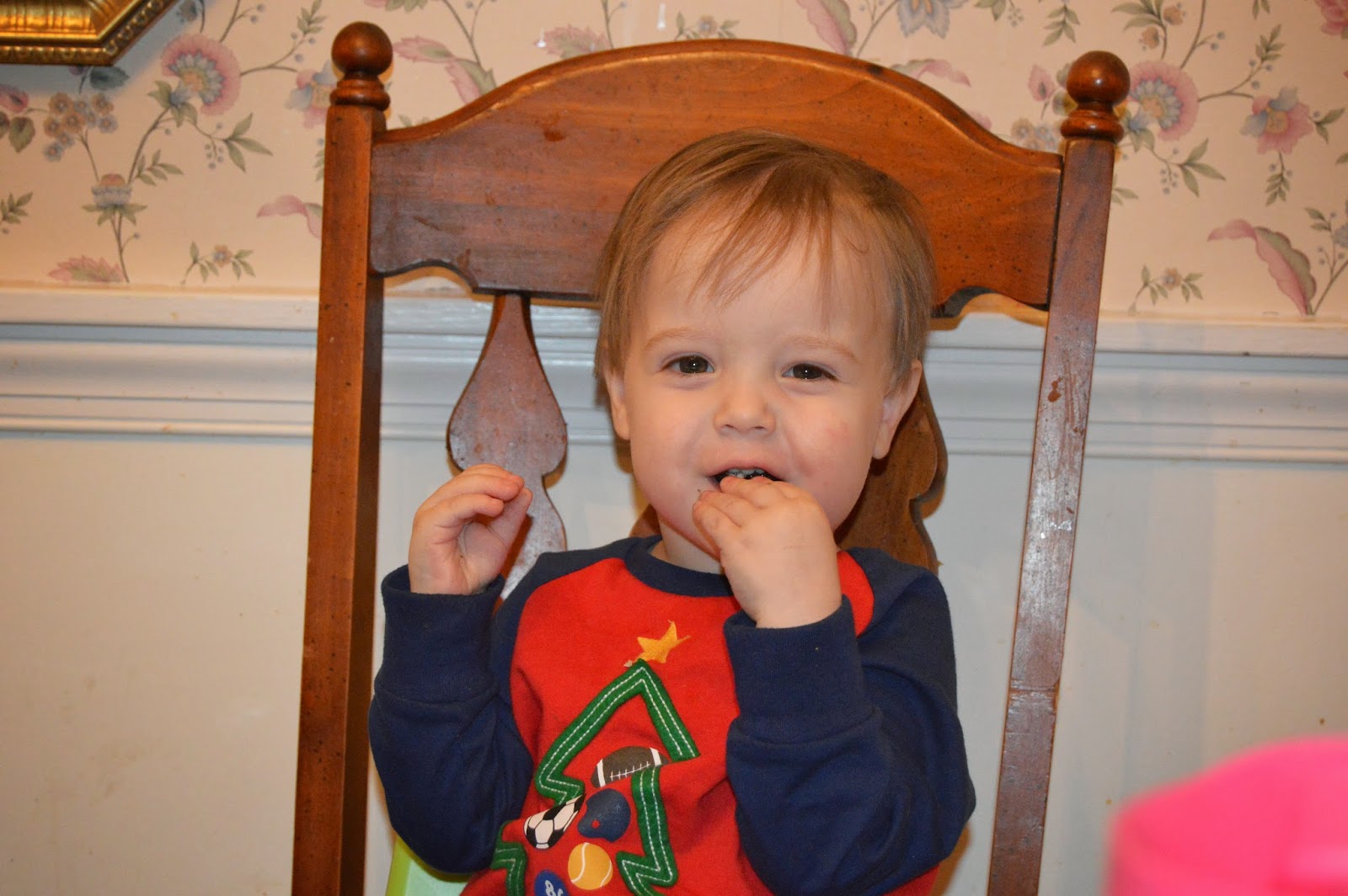 I had planned on posting my video of Lucy singing this morning, but blogger says the file is too large. So instead, enjoy these photos of the boys eating cookies! :)