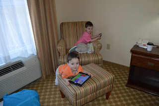 Who knows why but it was extremely busy in Savannah that Friday night. We weren't able to get any rooms with double beds, so the kids made pallets on the floor in our king bed rooms. (Lucy slept in Gramma and Pappy's room. . .that's why I have no picture of her.) They didn't seem to mind though and slept all night long!